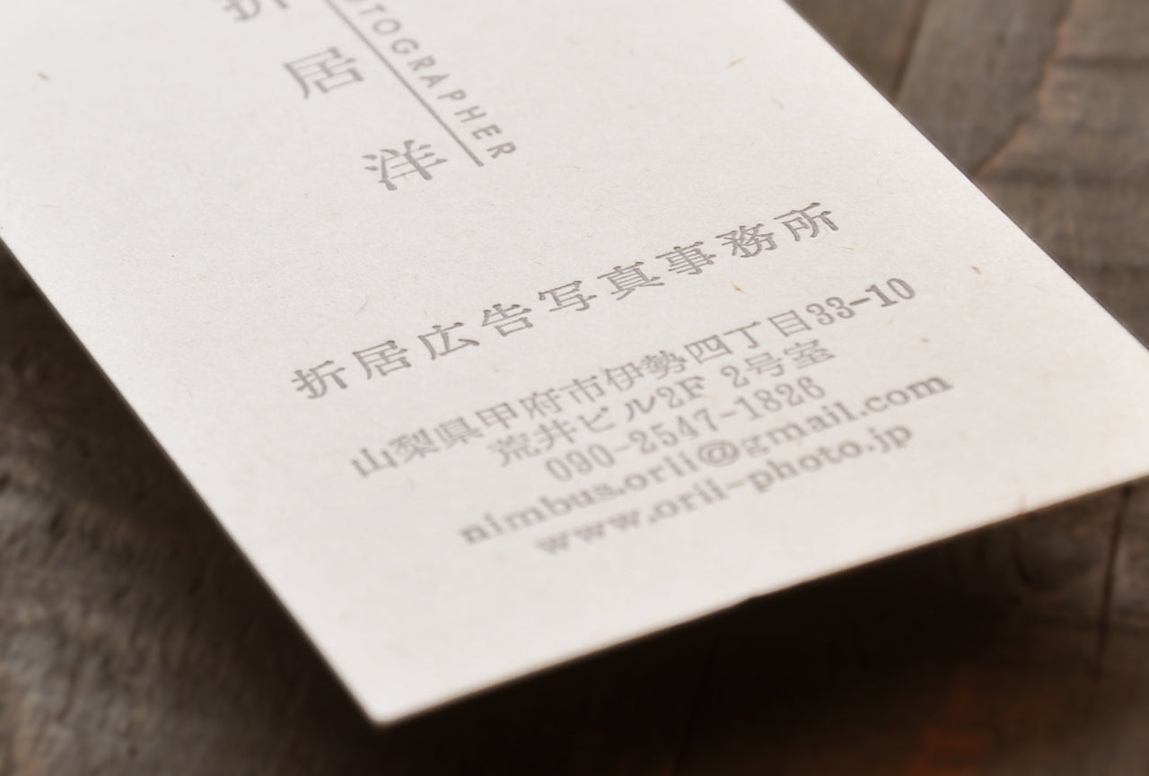 サンプルを見せてもらい、紙の質感や活版印刷特有の凹凸感と手触り、すぐに心に残る名刺だと感じました。